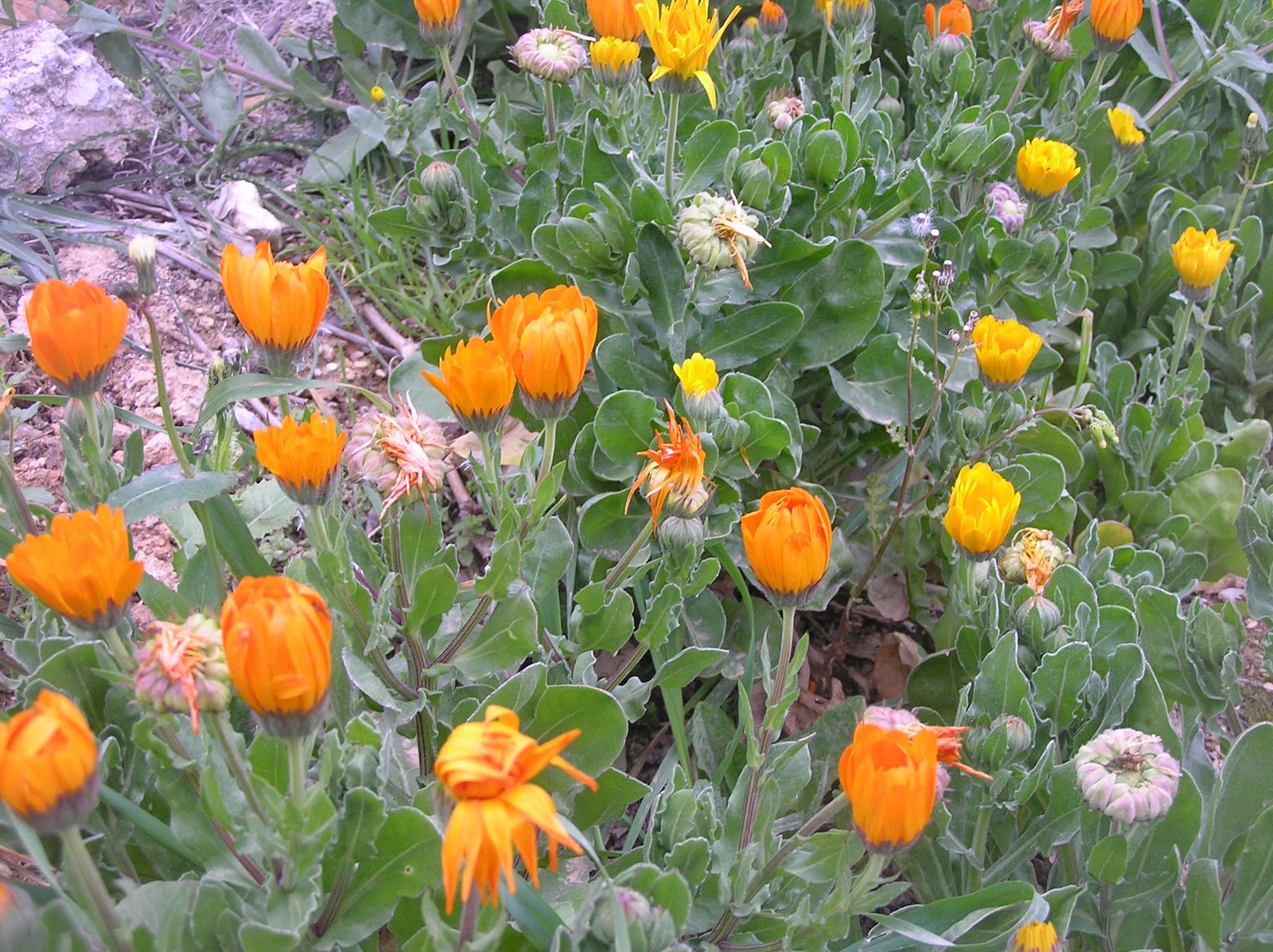 Calendula officinalis is considered the cultivar of Calendula arvensis, although originally it might be native to southeastern Europe. It often, however, escapes from the gardens and grows wild in the vicinity, as on the pictures above, in the area Palatia, on the southwest of Antikyra.