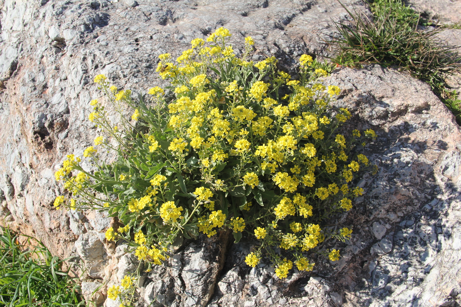 The Alyssum saxatile is supposed to start blooming in April and continue until late June, but many specimens on the southern slope of the Areopagus hill were in full bloom already by January! Is this in any way related to the global warming?